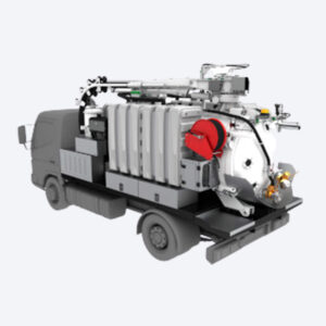 - имеется барабан для шланга высокого давления (до 500 бар) для очистки и измельчения удаляемого материала;